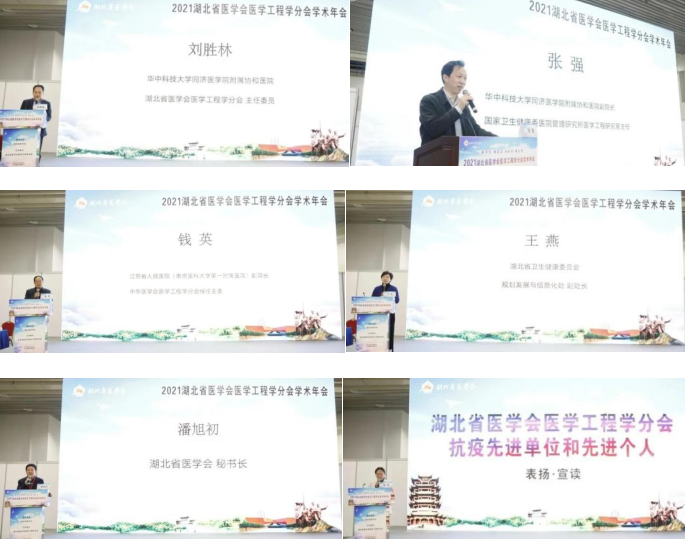 上(shàng)午9:00,開(kāi)幕式正式開(kāi)始。由湖(hú)北省醫(yī)學會(huì)醫(yī)學工程學分會(huì)主任委員劉勝林先生(shēng)主持,張強副院長、錢(qián)英副院長、王燕副處長、潘旭初秘書(shū)長分别緻開(kāi)幕詞。随後,湖(hú)北省醫(yī)學會(huì)醫(yī)學工程學分會(huì)副主任委員林青宣讀了“湖(hú)北醫(yī)工抗疫先進單位”“湖(hú)北醫(yī)工抗疫先進個(gè)人(rén)”“湖(hú)北醫(yī)工抗疫先進企業”。