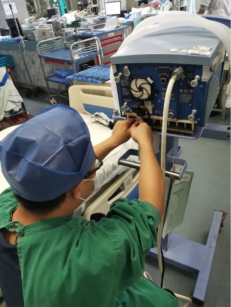 沒電(diàn),普通(tōng)家(jiā)庭還(hái)能撐一天,但(dàn)是醫(yī)院卻不能一秒(miǎo)沒電(diàn)。供氧機房(fáng)供氧暫停、血透室血透機停機、ICU呼吸機報警、手術(shù)室病人(rén)麻醉了但(dàn)手術(shù)無法正常進行(xíng),每一個(gè)機器(qì)的停止都關乎着生(shēng)命的存亡。醫(yī)星工程師(shī)臨陣不亂立即兵分兩路,一路緊急購買減壓閥,一路緊急搶修設備;科室醫(yī)護人(rén)員手動給病人(rén)回血;呼麻組專業工程師(shī)将所有(yǒu)呼吸機從設備帶和(hé)吊塔上(shàng)拆下更換接頭并接到氧氣瓶,與死神在生(shēng)死搏鬥着。